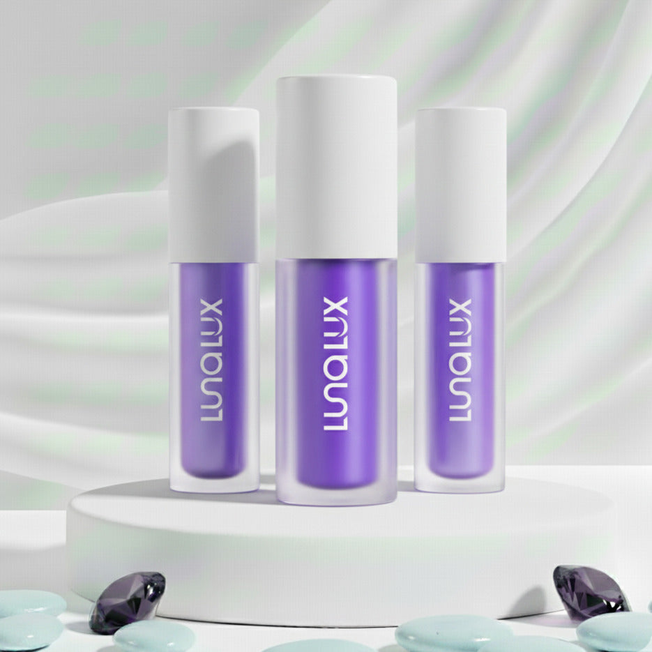 A szérum lila színárnyalata a színkorrekciós elv alapján optikailag semlegesíti a sárga tónusokat, és ennek köszönhetően a mosoly vizuálisan